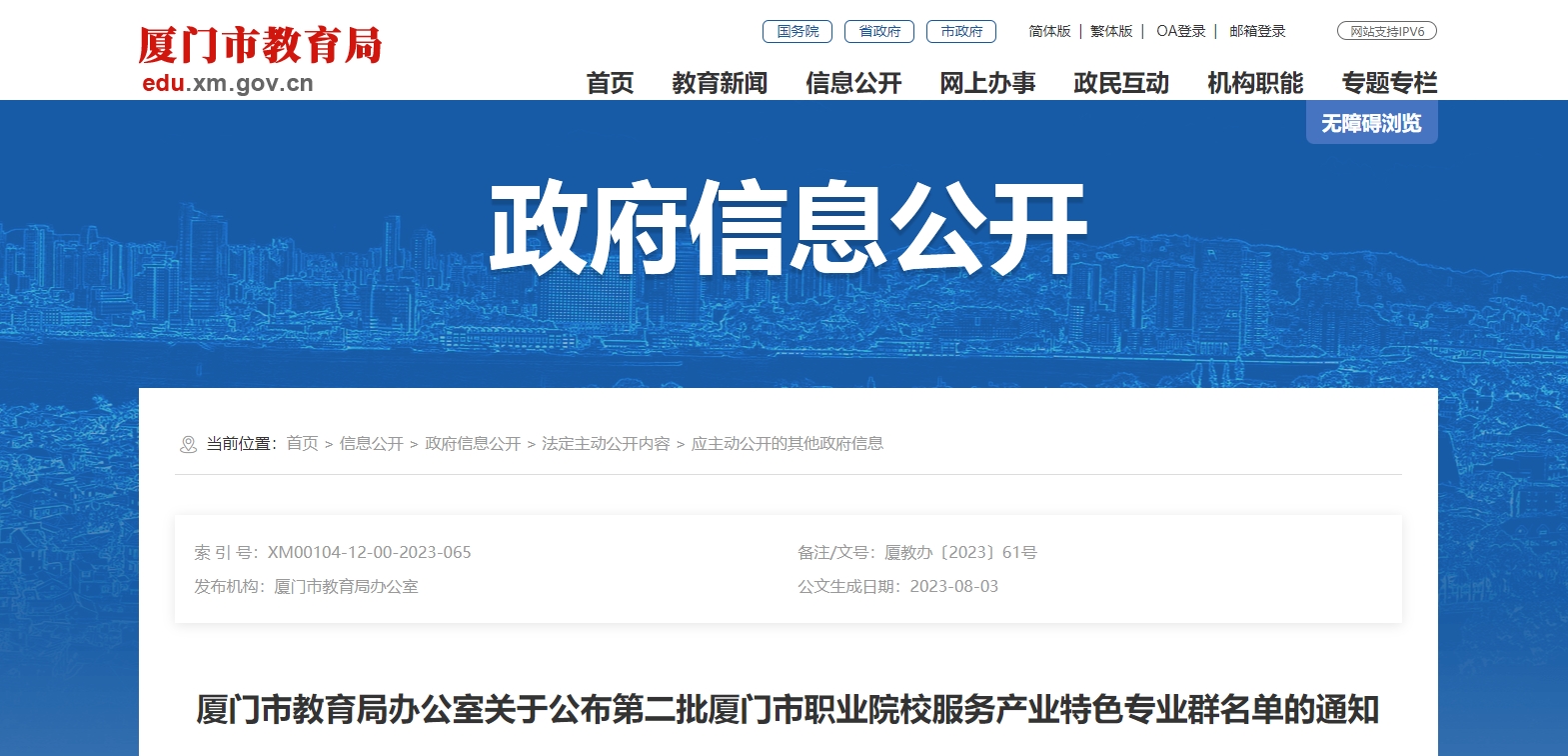 廈門市教育局辦公室關(guān)于公布廈門市應(yīng)用型本科高校高水平專業(yè)立項建設(shè)名單的通知