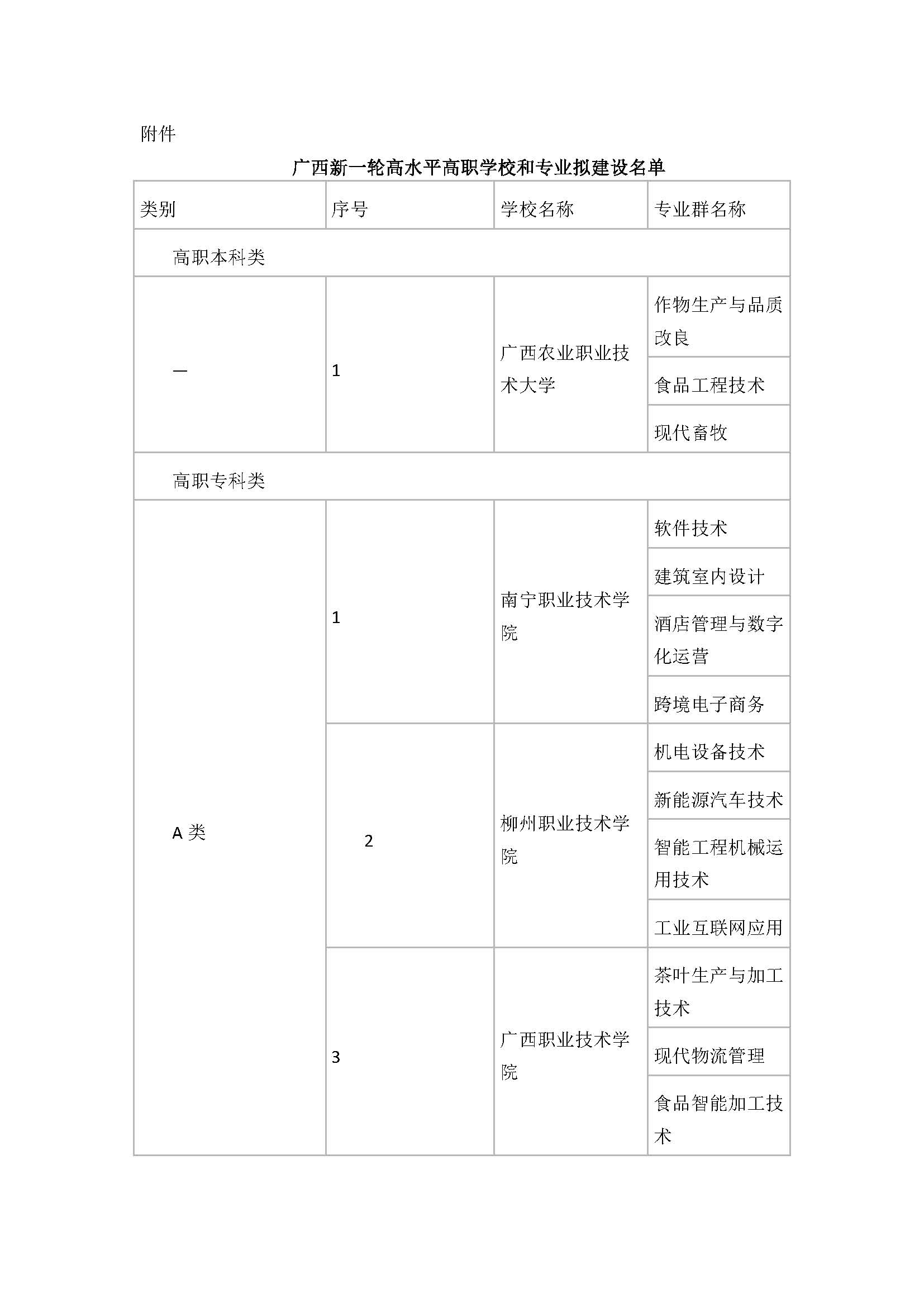 廣西新一輪高水平高職學(xué)校和專業(yè)擬建設(shè)名單公示
