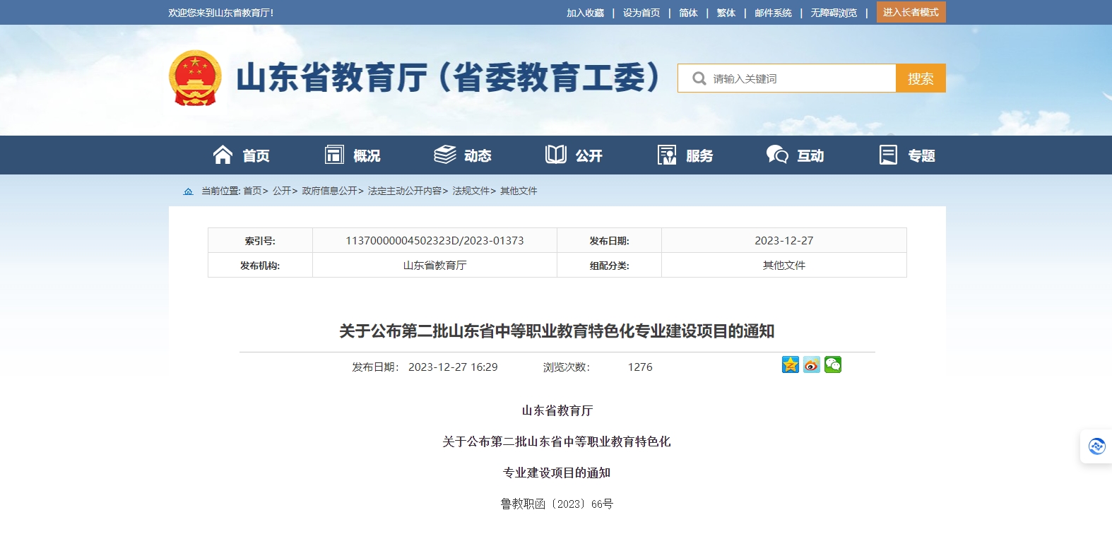 近日,山東省教育廳發(fā)布《關(guān)于公布第二批山東省中等職業(yè)教育特色化專業(yè)建設(shè)項(xiàng)目的通知》,根據(jù)《山東省教育廳關(guān)于開展第二批山東省中等職業(yè)教育專業(yè)特色化建設(shè)項(xiàng)目申報(bào)工作的通知》,經(jīng)學(xué)校申報(bào)、各市推薦、專家評(píng)審,山東省確定36個(gè)專業(yè)為第二批山東省中等職業(yè)教育特色化專業(yè)建設(shè)項(xiàng)目,目前名單已公布。