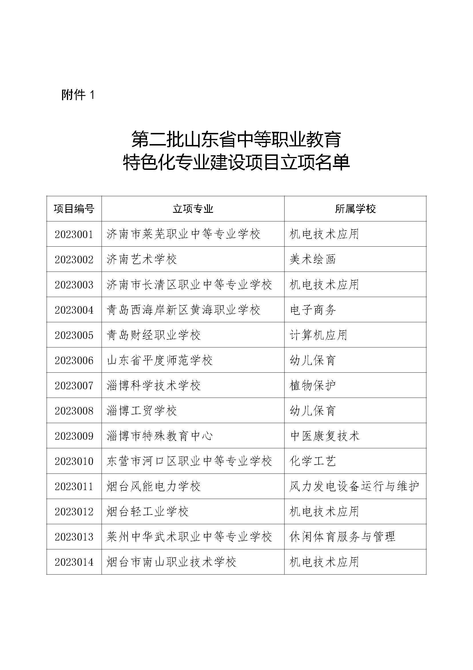 根據(jù)《山東省教育廳關(guān)于開展第二批山東省中等職業(yè)教育專業(yè)特色化建設(shè)項(xiàng)目申報(bào)工作的通知》(魯教職函〔2023〕43號(hào))精神,經(jīng)學(xué)校申報(bào)、各市推薦、專家評(píng)審,確定濟(jì)南市萊蕪職業(yè)中等專業(yè)學(xué)校機(jī)電技術(shù)應(yīng)用等36個(gè)專業(yè)為第二批山東省中等職業(yè)教育特色化專業(yè)建設(shè)項(xiàng)目,現(xiàn)將立項(xiàng)名單(附件1)予以公布,并將有關(guān)要求通知如下。