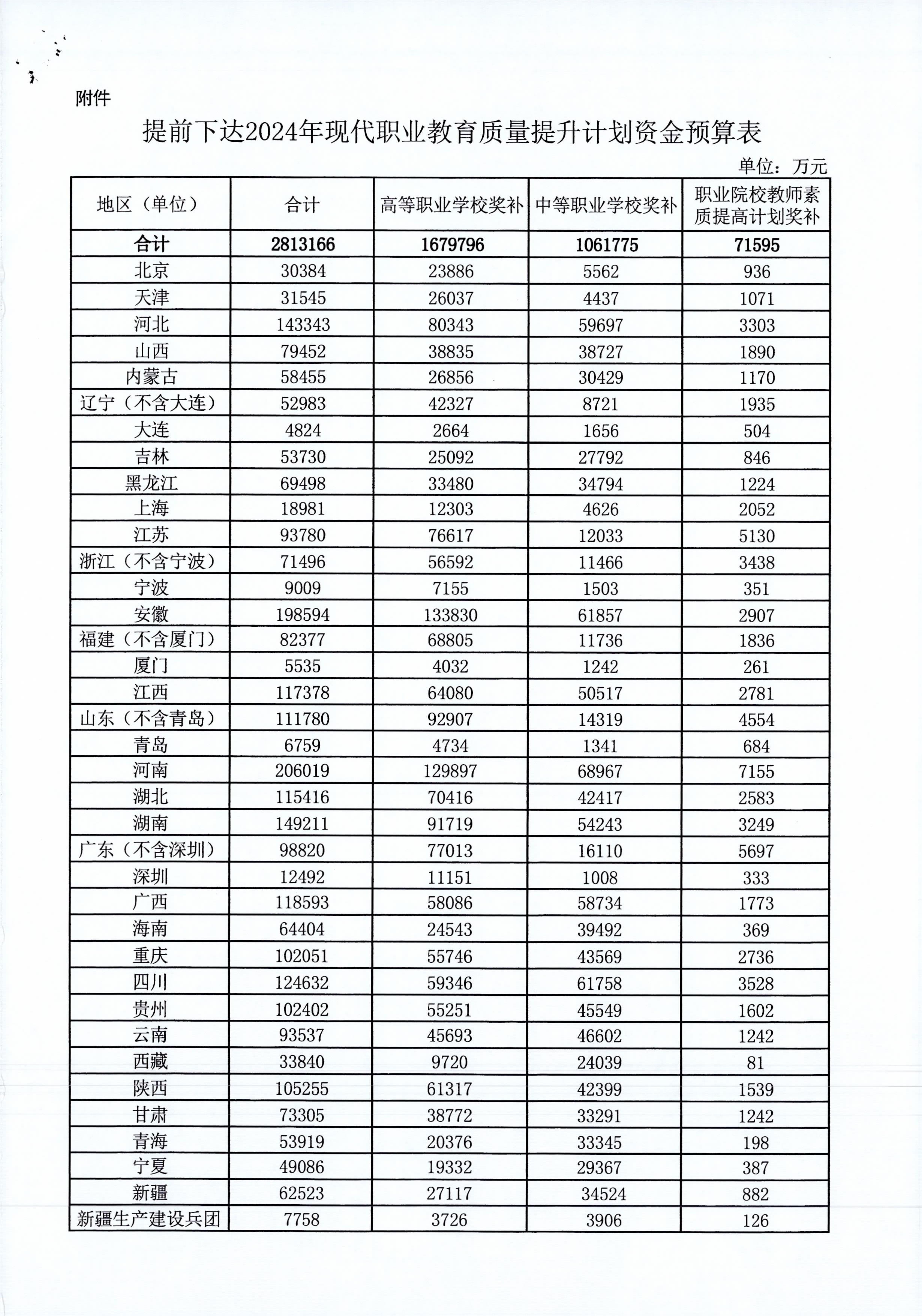 近日,財(cái)政部、教育部發(fā)布《提前下達(dá)2024年現(xiàn)代職業(yè)教育質(zhì)量提升計(jì)劃資金預(yù)算的通知》