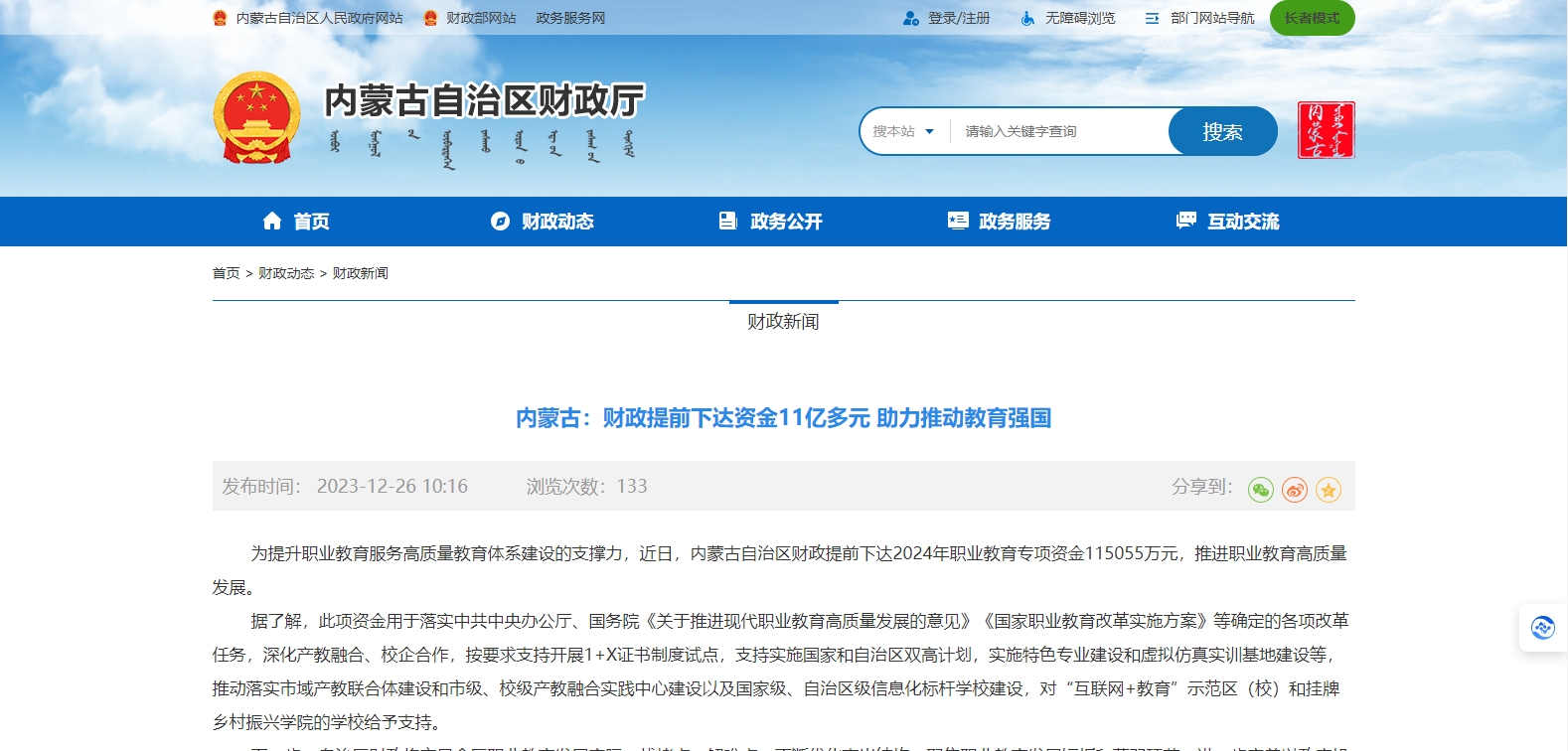 為提升職業(yè)教育服務(wù)高質(zhì)量教育體系建設(shè)的支撐力,近日,內(nèi)蒙古自治區(qū)財(cái)政提前下達(dá)2024年職業(yè)教育專項(xiàng)資金115055萬(wàn)元,推進(jìn)職業(yè)教育高質(zhì)量發(fā)展。