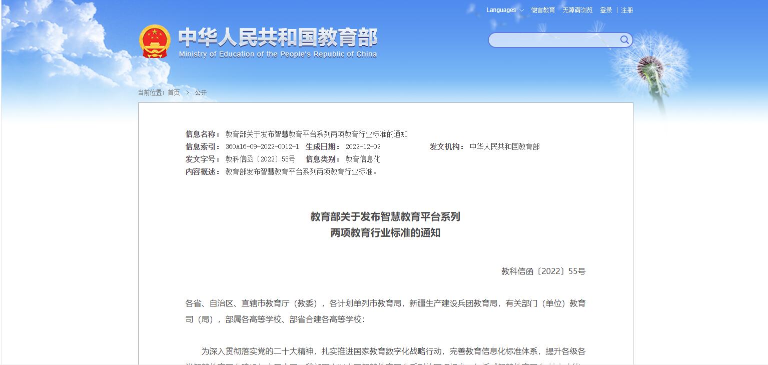 教育部關(guān)于發(fā)布智慧教育平臺(tái)系列兩項(xiàng)教育行業(yè)標(biāo)準(zhǔn)的通知