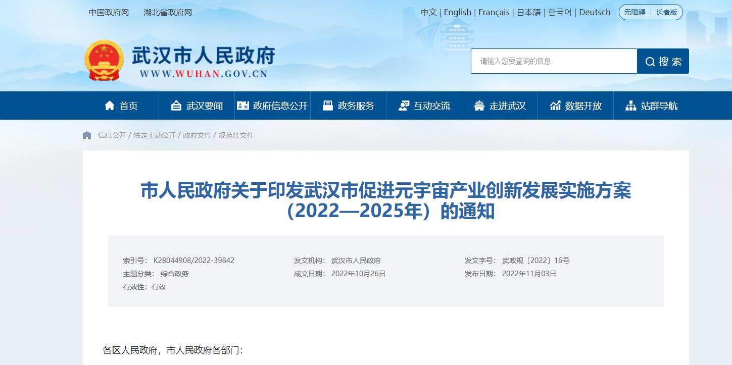 武漢發(fā)布促進(jìn)元宇宙產(chǎn)業(yè)創(chuàng)新發(fā)展實(shí)施方案(2022-2025)