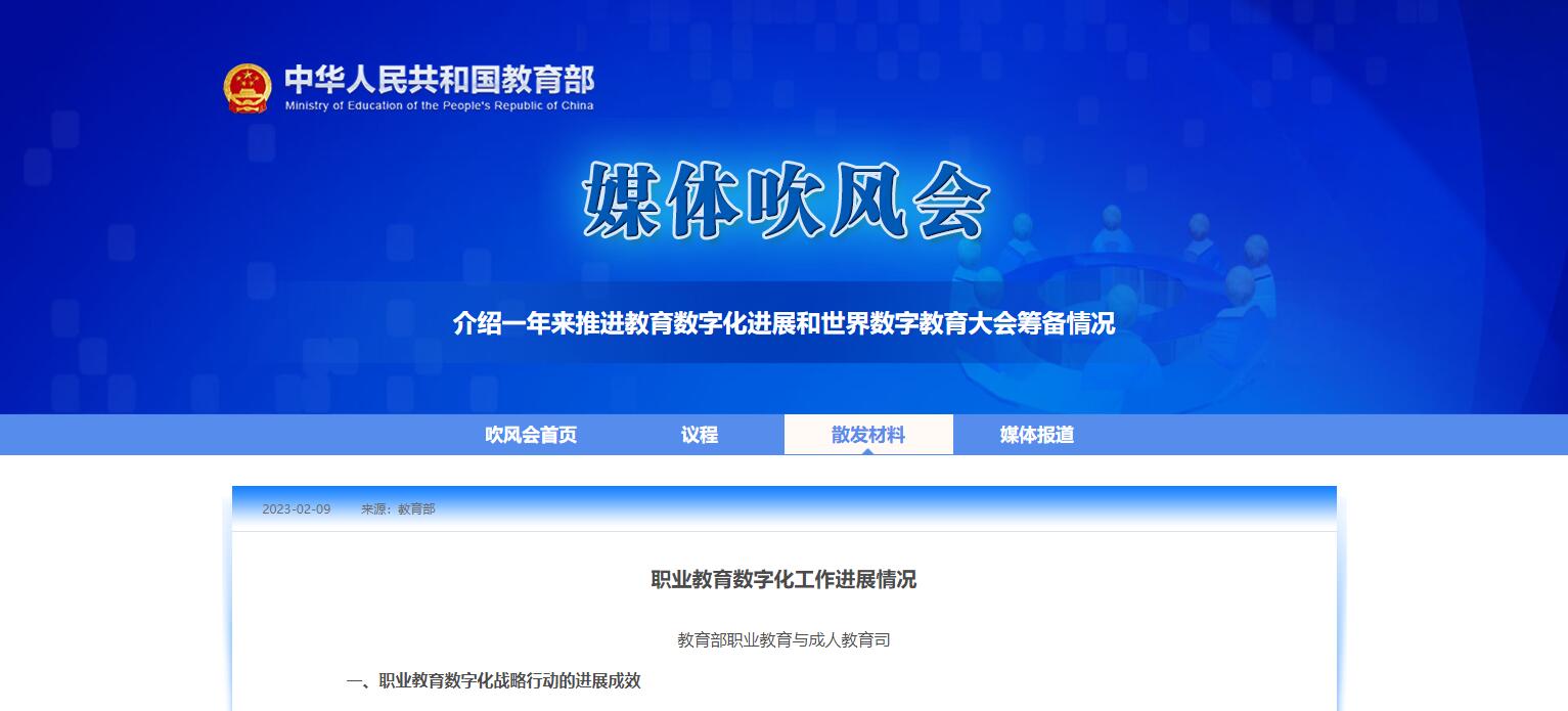 教育部職業(yè)教育與成人教育司:職業(yè)教育數(shù)字化工作進(jìn)展情況