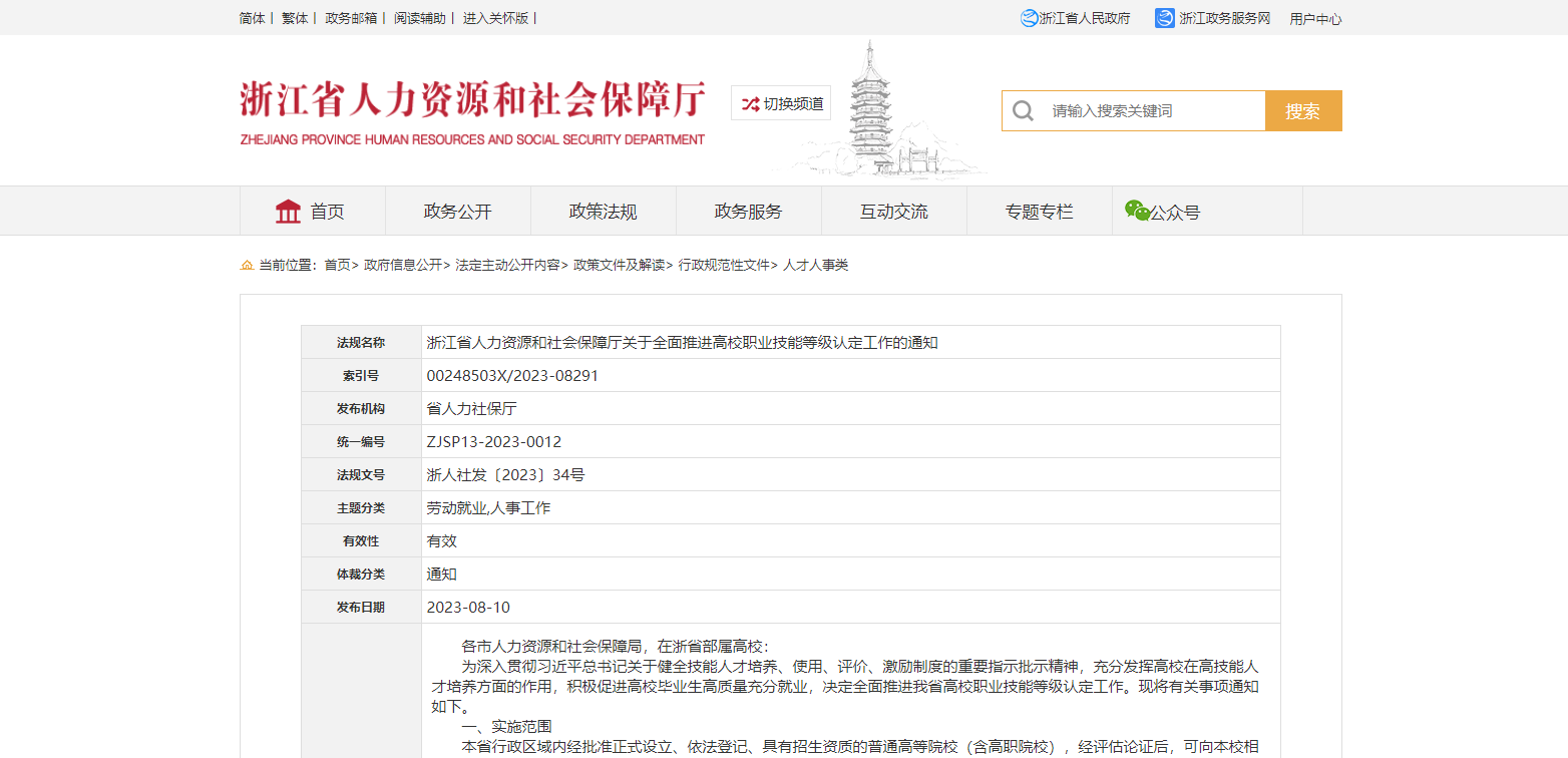 9月10日起施行!浙江全面推進高校技能等級認定工作