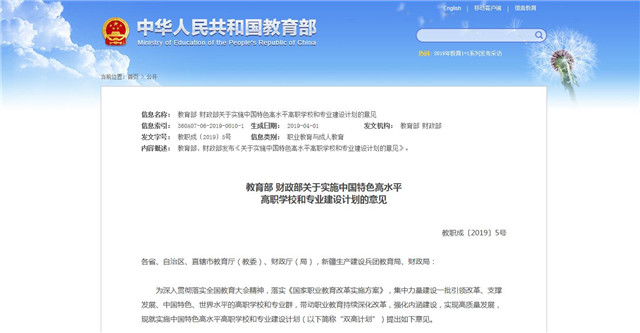 教育部財(cái)政部聯(lián)合發(fā)文 高職迎來雙高計(jì)劃