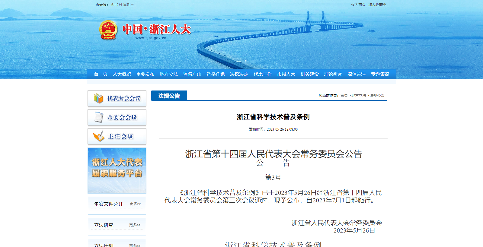 浙江人大發(fā)布浙江省科學技術普及條例,7月1日起施行