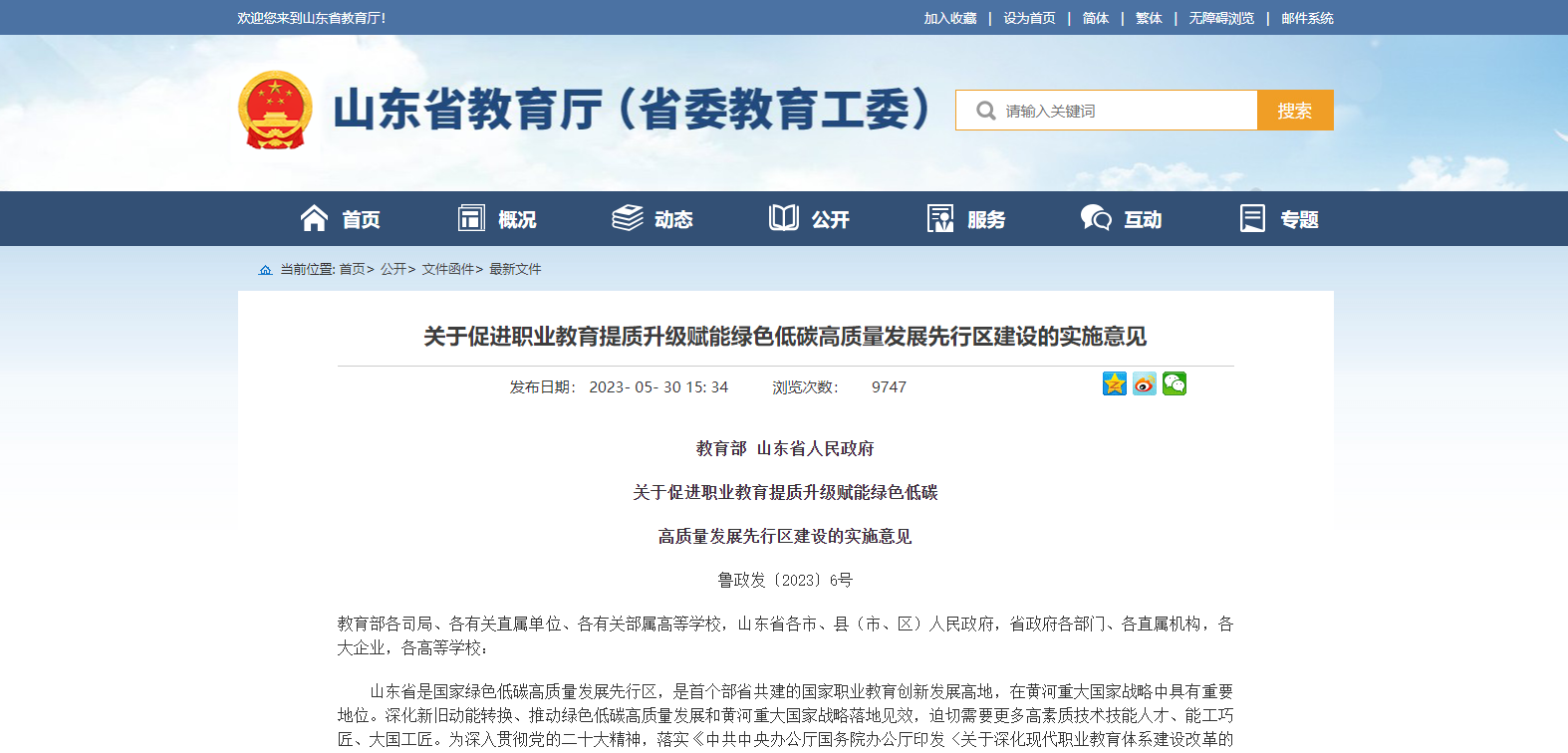 教育部 山東省人民政府雙部門發(fā)布關于促進職業(yè)教育提質(zhì)升級賦能綠色低碳 高質(zhì)量發(fā)展先行區(qū)建設的實施意見
