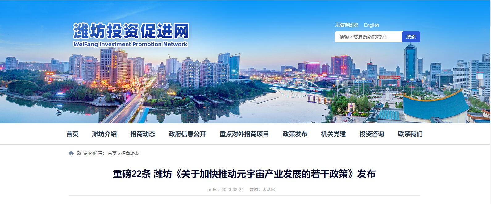 重磅22條 濰坊《關(guān)于加快推動(dòng)元宇宙產(chǎn)業(yè)發(fā)展的若干政策》發(fā)布