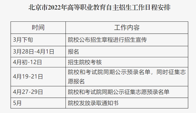 3月28日,北京市高等職業(yè)教育自主招生報(bào)名正式啟動。 (招生工作日程安排截圖) 北京教育考試院要......